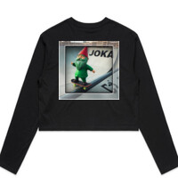Joka - White Logo Skating Gnome Cropped Long Sleeve